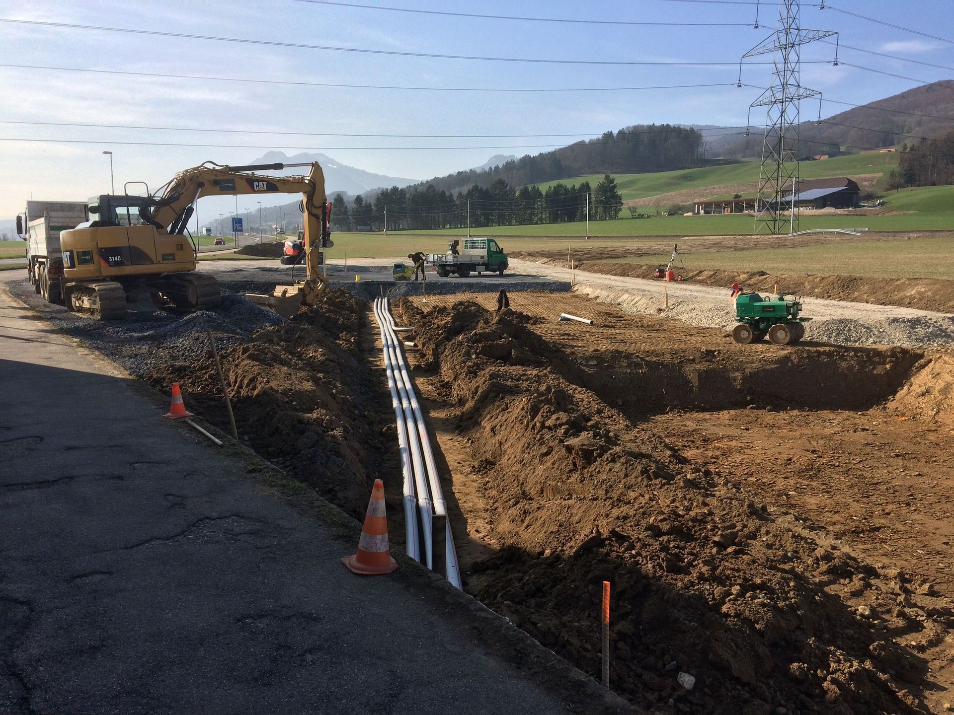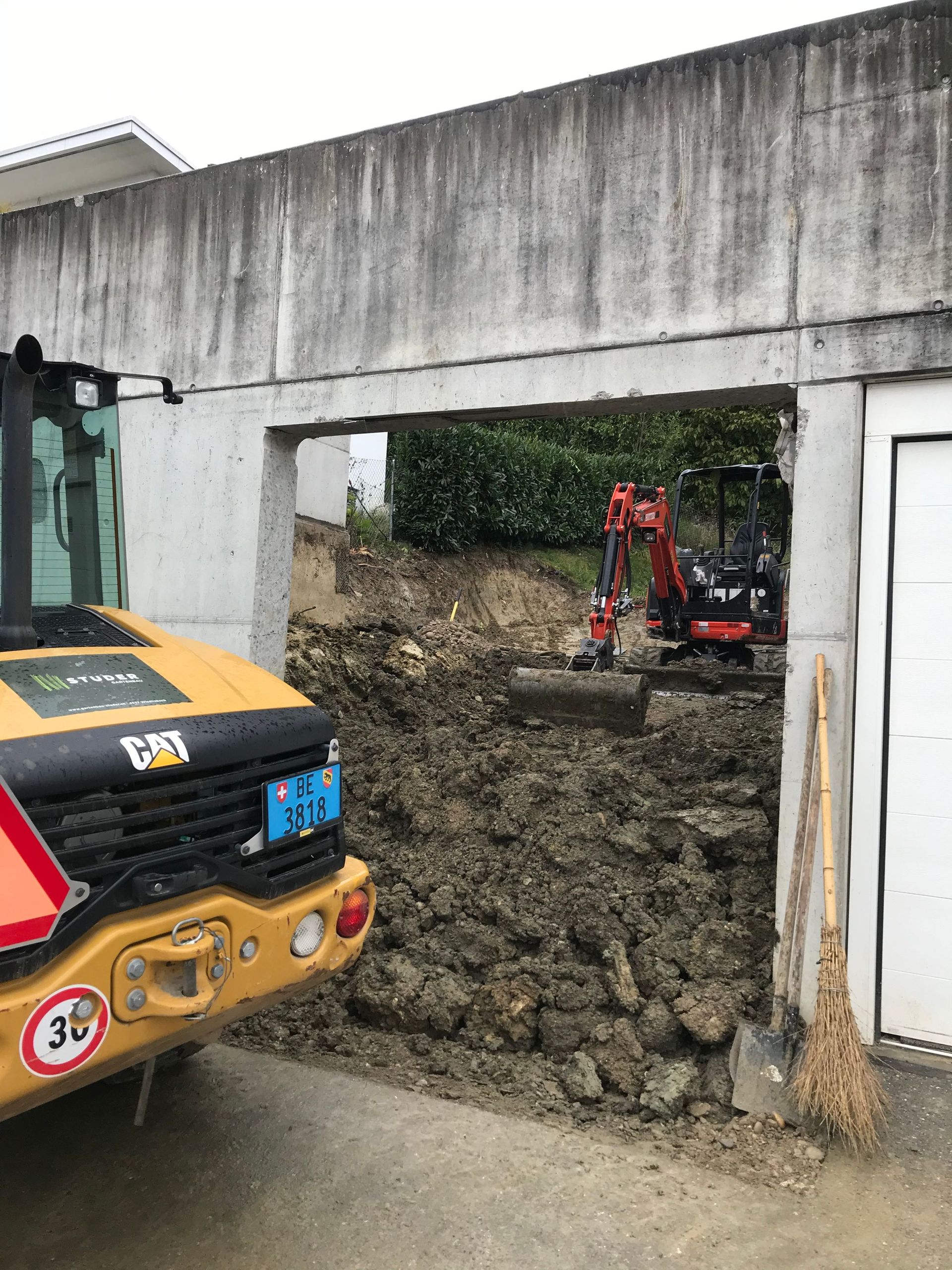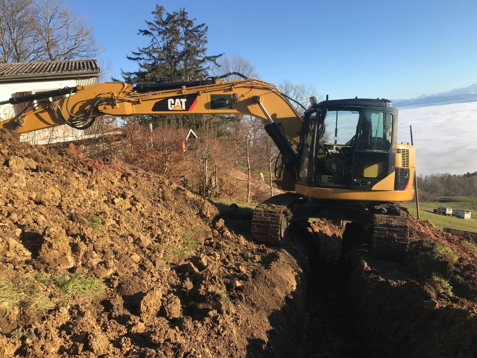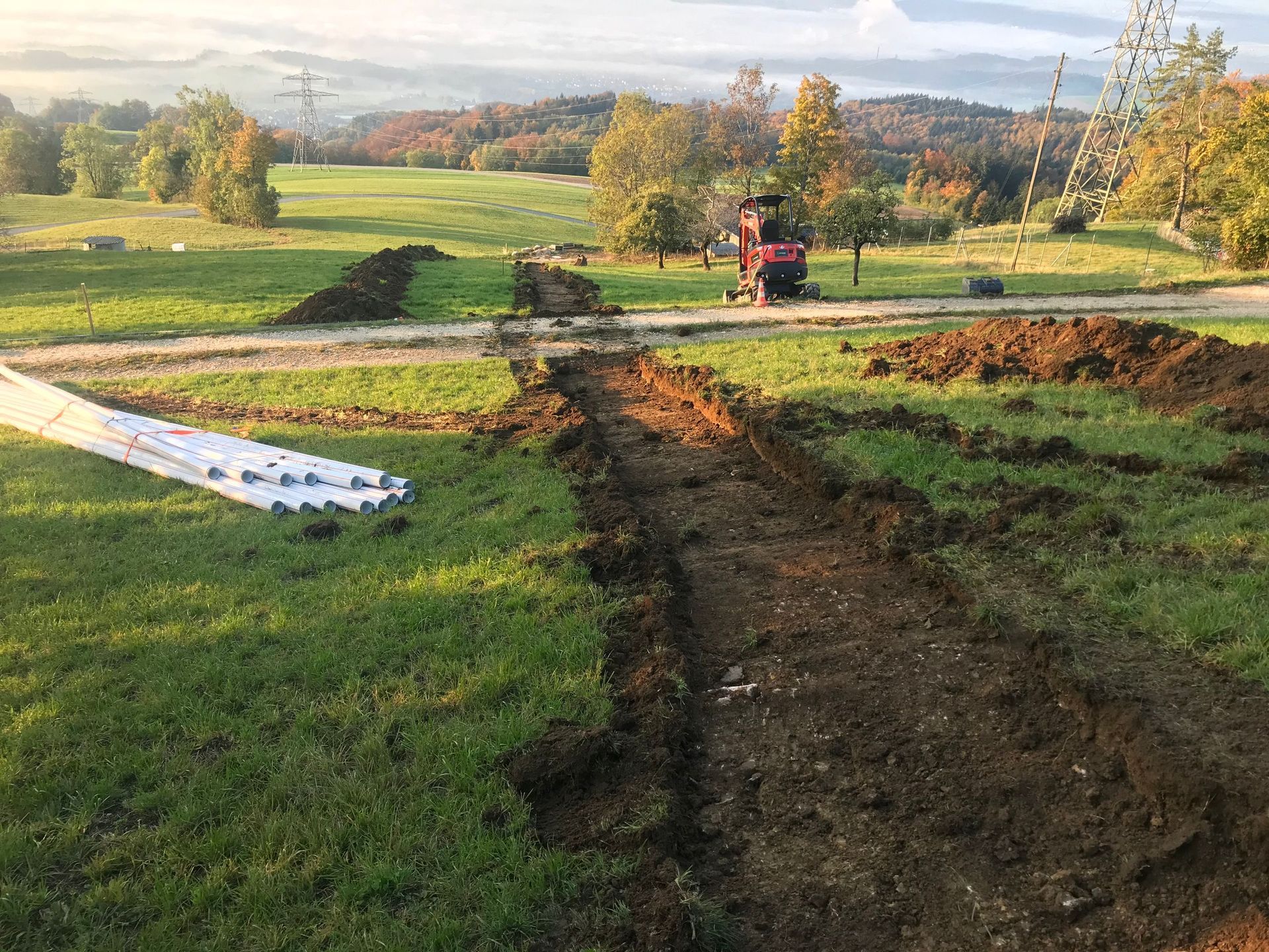 Dank unserem grossen Maschinenpark bestehend aus Baggern, Radlader, Lastwagen und LKW-Heckkran können wir Aushubarbeiten für Ihre Umgebung oder bei Neubauten übernehmen. Auch bei speziellen Aufgaben wie Leitungsbau, Rückbau oder ingenieurbiologischen Verbauungen können wir Sie professionell unterstützen. Wir arbeiten eng mit den zuständigen Partnern zusammen und erledigen so auch fachgerecht den Leitungsbau bei Wasserbrüchen oder Neuerschliessungen. Das Eindecken und die anstehenden Belagsarbeiten können wir nach der Reparatur oder Erschliessung professionell ausführen.